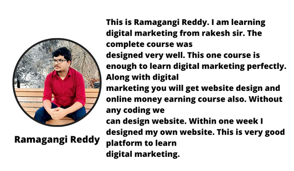 Hey! I am your Digital Marketing Coach Rakesh Reddy & I am on a Mission to help 100,000 Students To Learn Digital Marketing and Earn Through Digital Marketing by 2023.